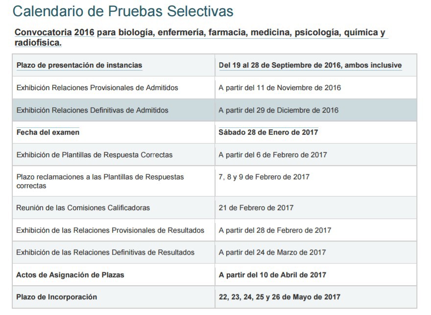 Con respecto a las plazas de Medicina se publica lo siguiente en la convocatoria en BOE: