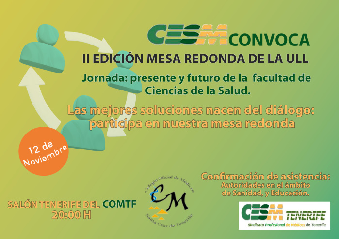 SEGUNDA EDICIÓN DE LA MESA REDONDA DE LA ULL: PRESENTE Y FUTURO DE LA FACULTAD DE CIENCIAS DE LA SALUD (CESM TENERIFE)